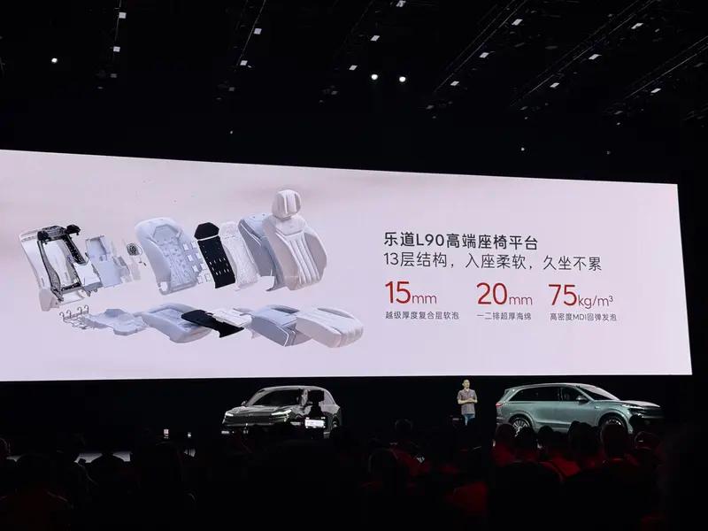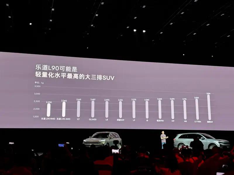乐道L60拥有同级最优的座舱可用空间效率,头等舱式的座椅宽肩设计,提供完美的舒适坐姿和体感。二排右侧尊享零重力座椅,超大空间无需横移,一键进入零重力姿态。坐垫与靠背压力平均分布,带来极致的休憩享受。乐道L90作为一款纯电大型SUV,是轻量化水平最高的大三排SUV,白车身质量433.8kg,整车质量仅为2250kg。