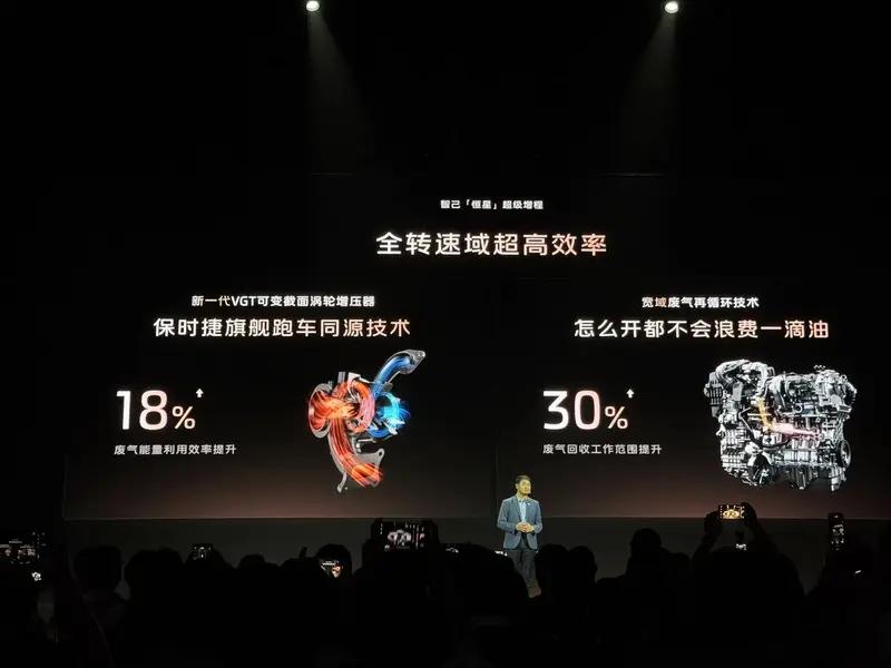 Zephyr 1.5T 增程专属超效黄金发动机采用了SAIC十佳技术,高热效率带宽提升了8倍,高压缩比深度米勒循环燃烧系统热效率提升1.02%;高混合进气设计滚流比提升60%。此外,该增程器还采用了保时捷跑车同源技术的新一代VGT可变截面涡轮增压器。
