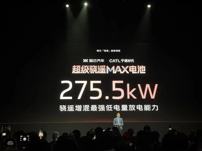 超级骁遥MAX电池在16%低电量时,放电功率依然高达275.5千瓦。峰值充电功率268kW,15分钟续航补充310km。