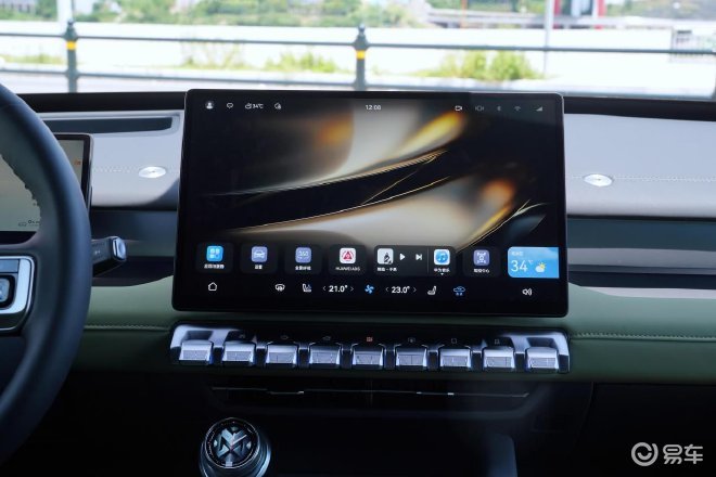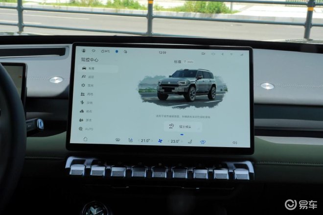 内饰方面,猛士M817中控屏幕下方保留了大量机械物理按键,兼顾硬派复古风,同时又带来更便捷的操作体验。飞航旋钮可玩性很高,可控制驾驶模式切换:标准/运动/AUTO/雪地/深雪/泥地/岩石/沙地/涉水,细节点缀科技感十足。