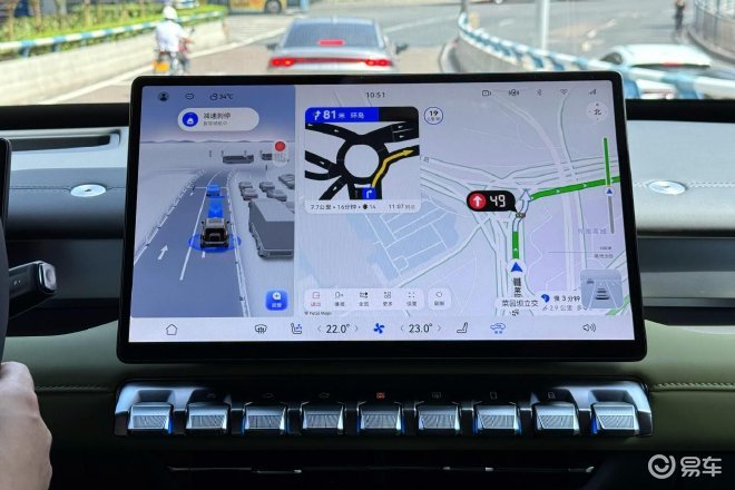 这次试驾特意体验了华为乾崑智驾HUAWEI ADS 4,在城市快速路上开启领航辅助NCA,系统能自动跟车、变道、下匝道,过环岛遇到加塞的车辆,会提前减速礼让,尤其在重庆市区这样复杂多变的道路环境下,智驾辅助系统表现得不会很激进,反而更像“老司机”,在很大程度上可以缓解驾驶者的疲劳感。