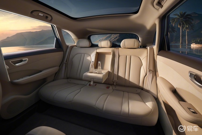 后排空间看上去极为宽敞,座椅看上去也非常舒适。此外我们还看到新车后排不但配备了中央扶手,而且还提供了娱乐屏。