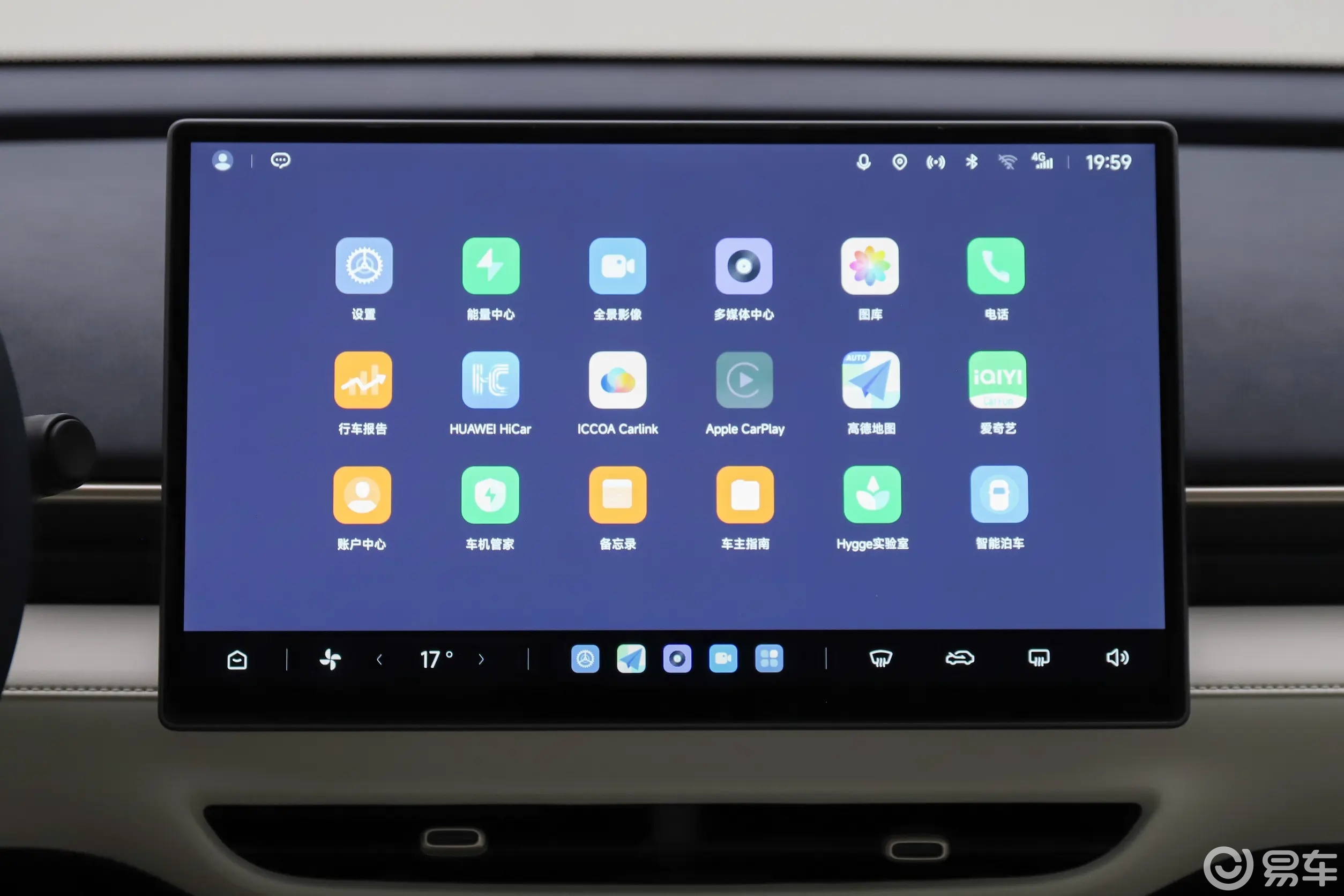 极狐T1的内饰采用了T字型的岛台设计布局,在中央扶手处有一个舒适的过道,当停好车后,驾驶员一侧车门由于空间太小开不了时,可以轻松去到副驾驶位下车,中控台上几乎没有任何实体按键,双拼色的内饰配色加上大面积的皮质包覆,使其精致感十分出色,8.8英寸的全液晶仪表盘+15.6英寸的中控屏属于常规的组合方式,智能化表现非常丰富,支持手机App远程控制、蓝牙/车载电话、车联网、OTA升级、语音识别控制系统以及CarPlay、Carlink和HUAWEI HiCar三种手机互联映射功能,可以提升日常使用的便利性。三幅式的多功能方向盘造型时尚美观,采用的是皮质的材质,支持上下前后四向调节功能,换挡形式为电子式怀挡,在前排中央扶手处还带有2个USB/Type-C的多媒体接口,并且最大充电功率达到了66W,给手机充电是比较快的。