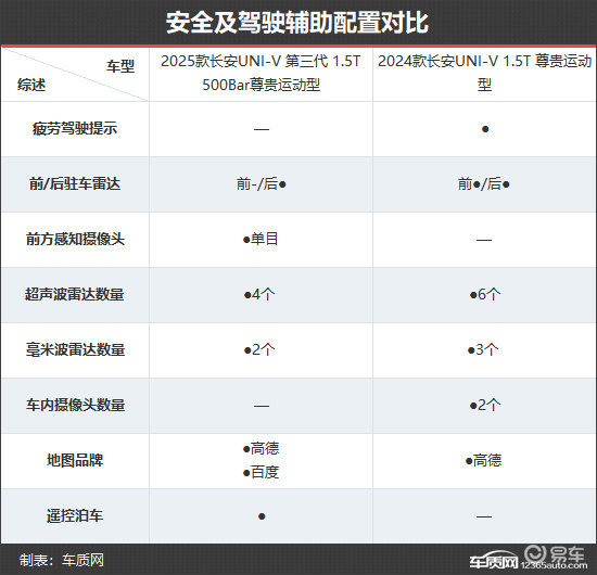 2025款长安UNI-V 第三代共推出4款车型,官方指导价为10.29-11.99万元。因为1.5T 500Bar尊贵运动型是4款车型中性价比最高的车型,因此本文选取这款车型作为参考,以便能够更加直观地看出新老款车型在综合竞争力方面的差异。