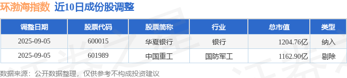 近10日内环渤海(399357)指数成份股做了调整,新纳入了1只股票,剔除了1只股票。