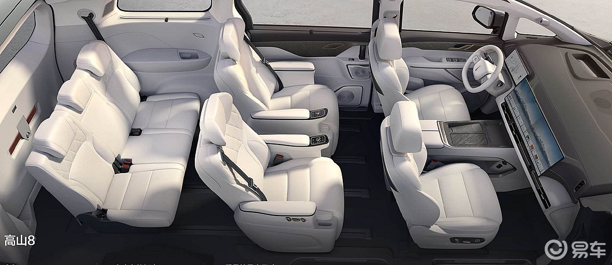 内饰设计上,高山7采用了“家居化”设计理念,精选婴儿级亲肤材质与环保水性胶粘剂,确保车内空气质量。第二排的两个“云感零重力”座椅不仅支持16向电动调节,还配备3档通风、加热与8模式按摩功能。特别配备的17.3英寸2.5K超清吸顶娱乐屏支持手机投屏与在线影音,而12.5L容量的智能冷暖冰箱可在5-50℃之间精准温控,满足全家出行的多样需求。