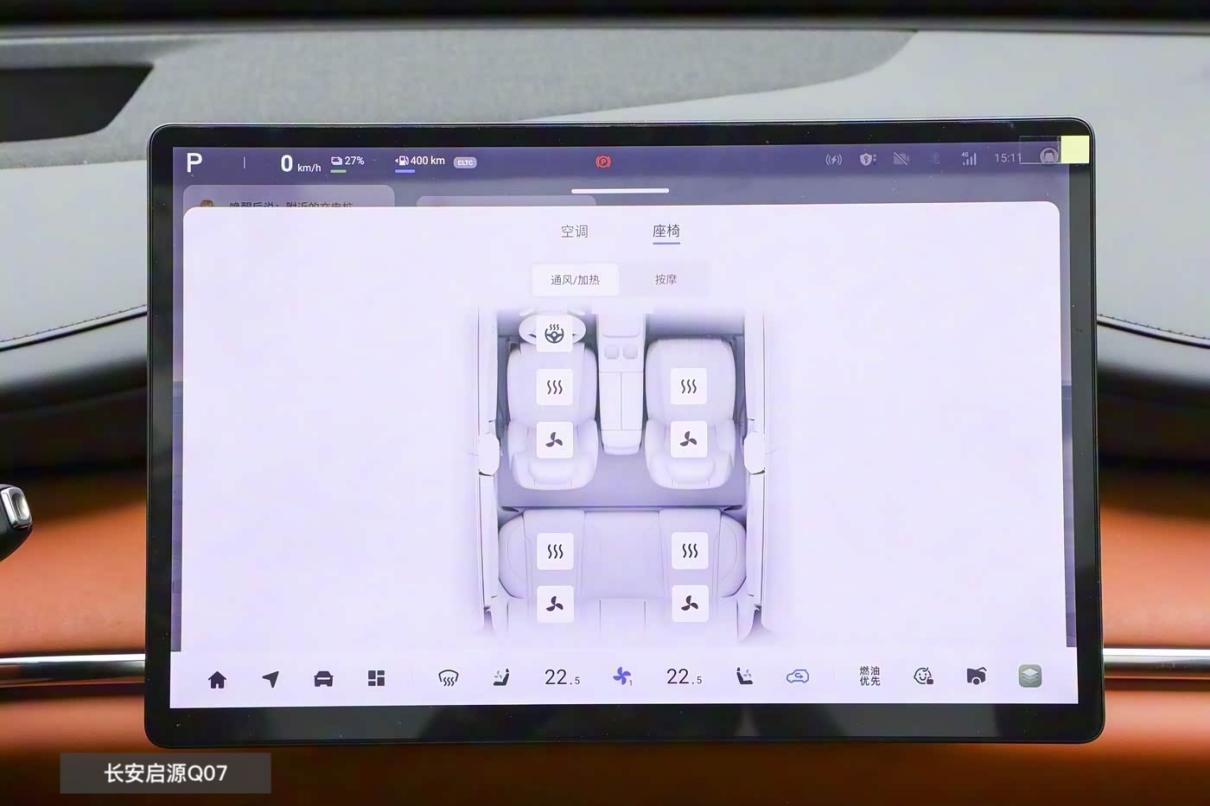 长安启源Q07干脆是把加热通风覆盖了全车,像前排还带按摩、副驾驶是零重力座椅,一车人都能全程温暖舒适,而且有了按摩后,真要是自驾游的话,甭管是开得久了,还是遇上堵车,它都能有效缓解疲劳感。而且车辆二排也有无级靠背调节,怎么坐都舒适。