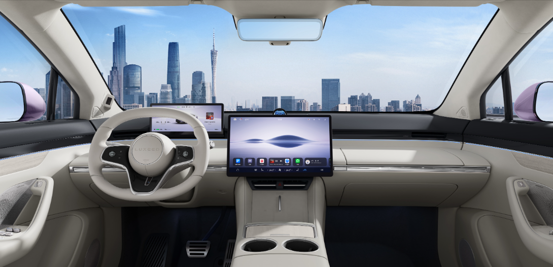 而智界R7以4956mm的车长和2950mm的轴距,直接将空间体验拉升至大型SUV级别。后排腿部空间接近1米,头部空间通过C点后移设计优化,1.8米的乘客也能轻松坐直;副驾零重力座椅支持18向电动调节+腿托+腰托,一键切换至“零压模式”,搭配双层隔音玻璃和128色氛围灯,让长途旅行秒变“移动头等舱”。