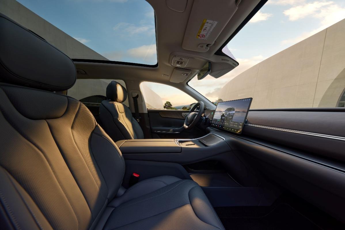 中控区域升级为同级最大17.3英寸悬浮式超清屏,领先同级Model Y、小鹏G7等一众车型,2.8K分辨率与6mm超窄边框带来沉浸式视觉体验。下方16.3L超大镂空储物空间嵌入柔光照明灯,兼顾实用性与仪式感。环绕式256色瀑布流光氛围灯可随音乐律动变换,配合贯穿式电动隐藏出风口与智能香氛系统,构建起“视、听、触、嗅”四维感官空间。