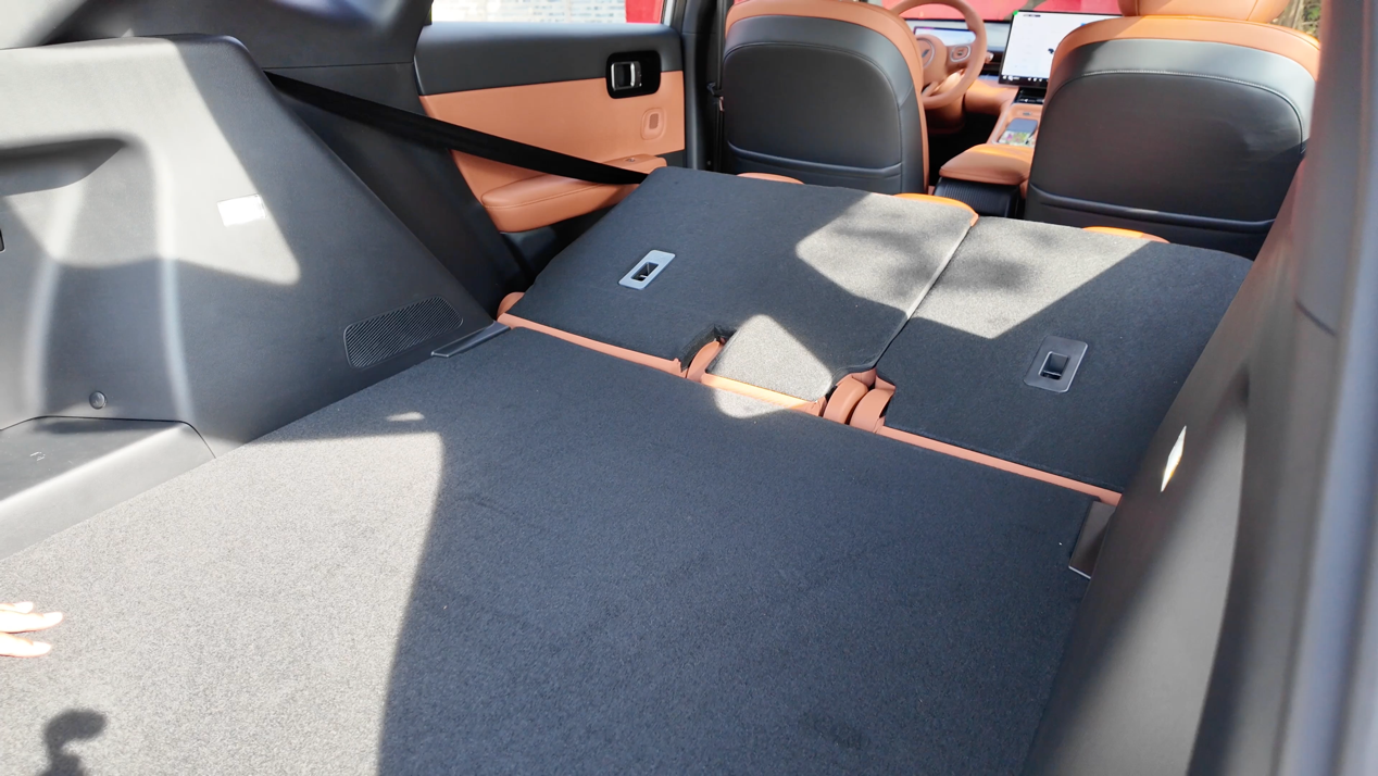 如果把靠背放倒,就有一个很长的纵向空间,放大件物品没问题。