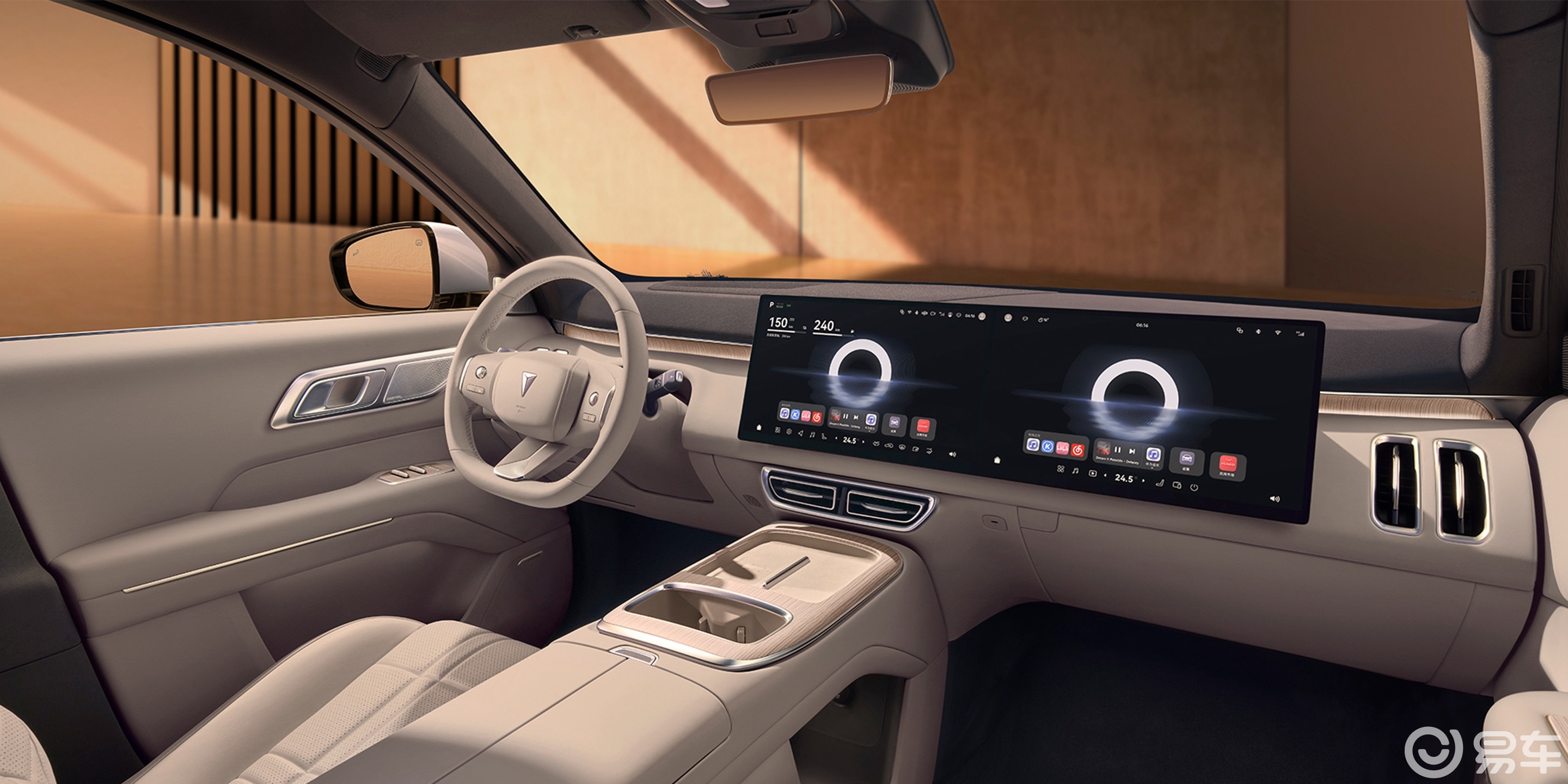 进入到车内,深蓝S09和问界M8一样搭载了鸿蒙座舱harmonyspace5,在这套智能化座舱系统加持下,汽车像手机一样成为移动终端,严格来说越来越靠近智能体。