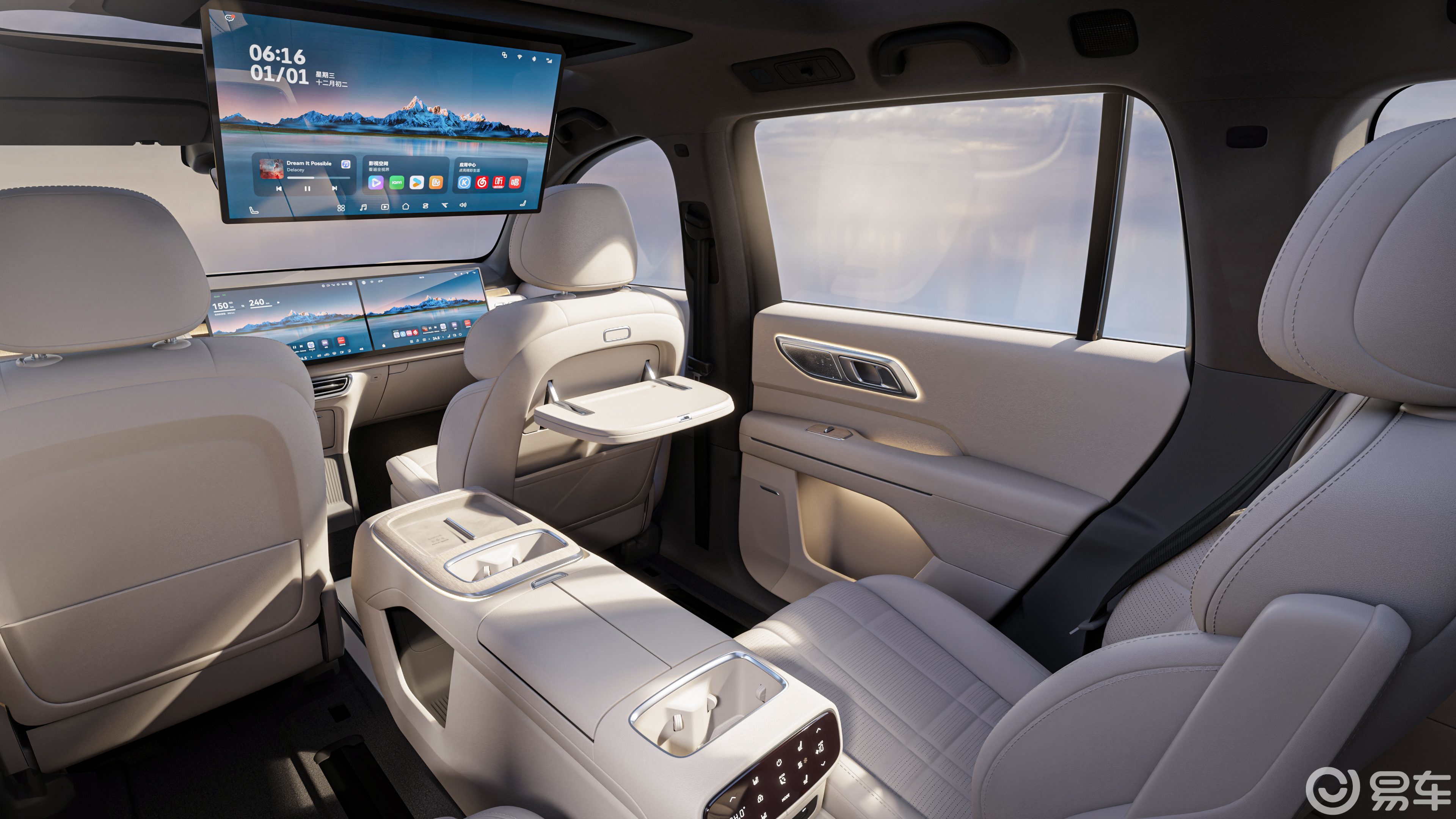 在车内,深蓝S09有一个问界M8没有的设计—可以前后移动的岛台,奔驰唯雅诺有类似设计。既可以是前排的中央扶手,也可以是第二排的冰箱,还可以服务第三排乘客。这项设计挺实用,给前中后三排座椅组合提供可能,并且内置冰箱等实现了储物功能,创新带来了奇妙的体验。
