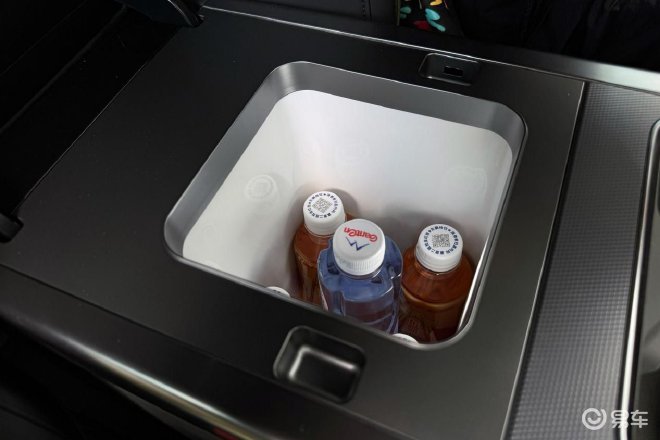 中控台下的隐藏格空间很实用,此外车内还有24个储物空间。中央扶手箱里藏着智能冷暖冰箱,可实现-6℃-50℃宽域调节,实用性还是非常高的,尤其在重庆当天接近40的高温环境,随时能喝到冰凉的饮料,简直不要太爽。冰箱具备5L的容积,轻松放6罐可乐不成问题。