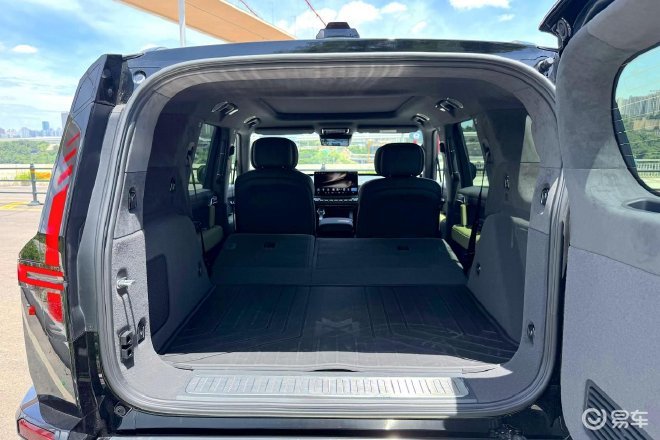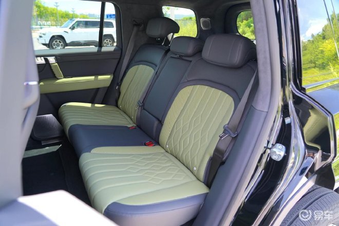 3005mm的轴距让后排空间堪称 “奢侈”,180cm的身高坐在后排,膝盖离前排座椅还有两拳多距离,翘个二郎腿完全没问题。后排座椅支持电动调节,放倒后能和后备箱连成一个 2.1m的大床。