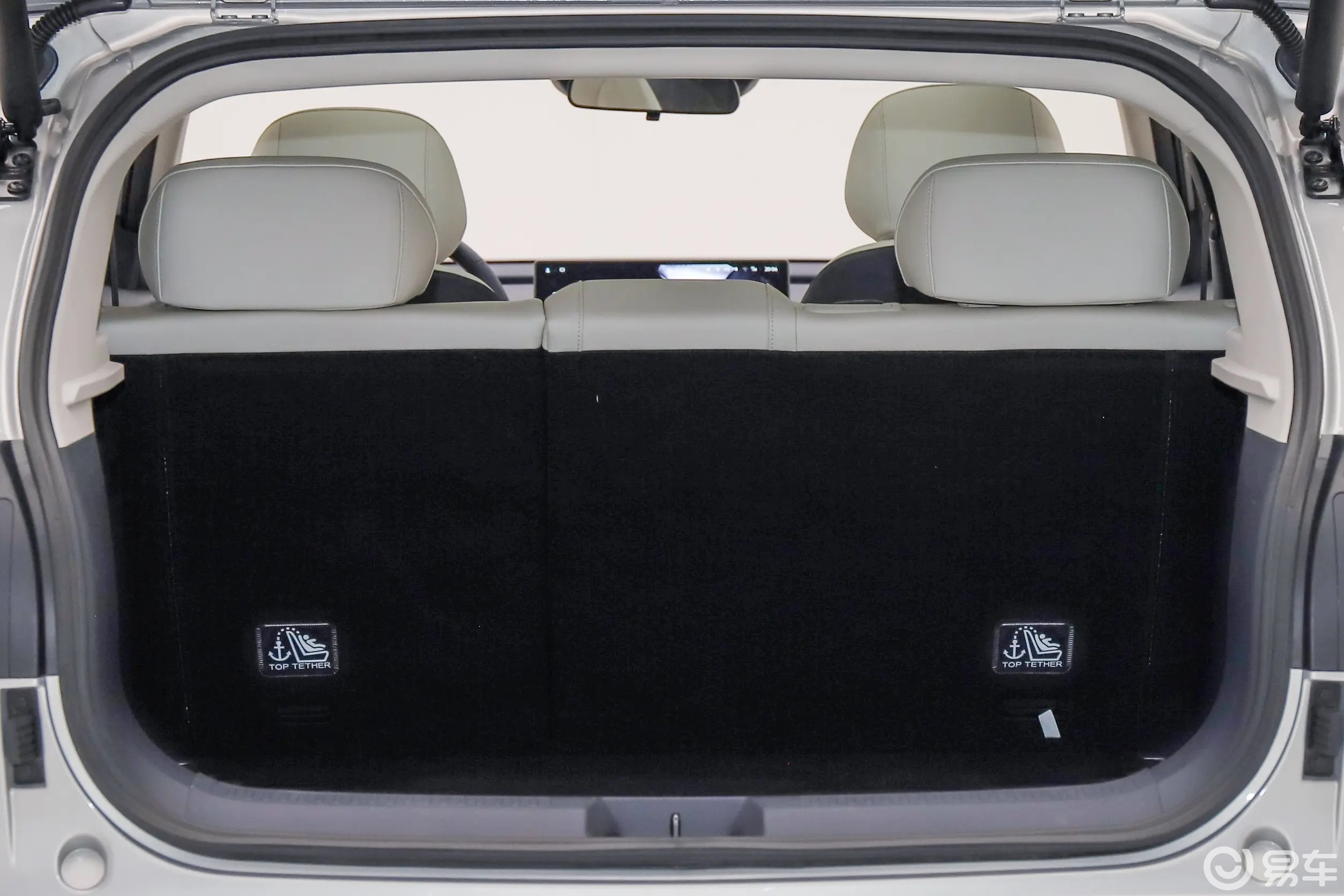 空间部分则是极狐T1的优势之一,虽然定位是小型车,车身长宽高仅有4337x1860x1572mm,但是轴距长达2770mm,这样的水平已经比不少紧凑型车都还要长了,接近一些中型车了,小编身高180cm,体重70kg,坐进第二排后,腿部空间居然还有接近2拳半的富余,确实给到了一定的惊喜,并且地台采用的是纯平的处理,座椅宽大厚实,即使在满员状态下都不会觉得拥挤,能够保障长时间的乘坐舒适性。行李舱的日常容积为459L,后排座椅支持整排放倒功能,最大可扩展至1352L,装载能力十分出色。