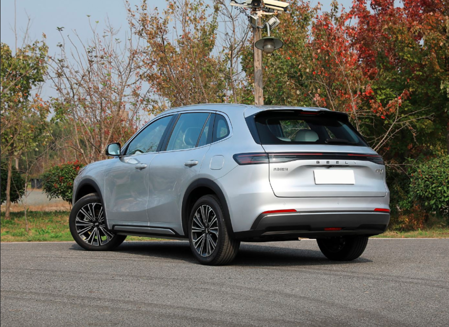 银河星舰7 EM-i同样采用分体式大灯设计,只不过LED日行灯是贯穿式风格,远近光灯尺寸不大,同样与通风口集成在一起,底部采用梯形散热口,整个前脸还是挺耐看的。车身型面流畅自然,车窗区域加入一圈银色装饰条,前后轮眉进行了熏黑处理,轮毂样式也比较美观。尾部造型稍显平淡,贯穿式尾灯融入了熏黑元素,底部加入灰色饰板,看上去很简洁。