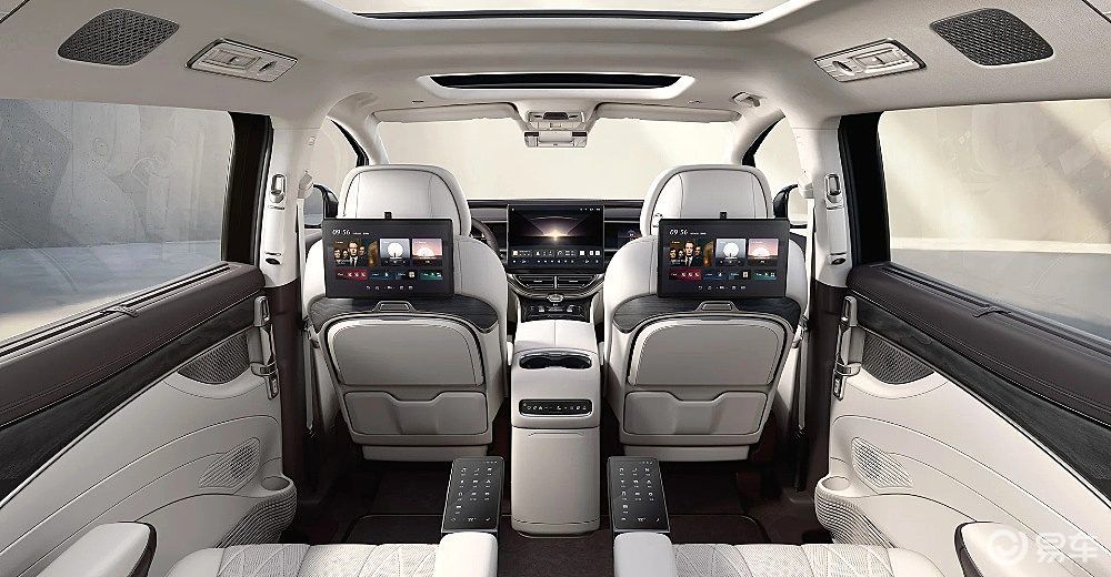 内饰设计上,高山7采用了“家居化”设计理念,精选婴儿级亲肤材质与环保水性胶粘剂,确保车内空气质量。第二排的两个“云感零重力”座椅不仅支持16向电动调节,还配备3档通风、加热与8模式按摩功能。特别配备的17.3英寸2.5K超清吸顶娱乐屏支持手机投屏与在线影音,而12.5L容量的智能冷暖冰箱可在5-50℃之间精准温控,满足全家出行的多样需求。