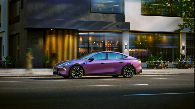 外观采用家族化轿跑设计语言,整体呈溜背造型,配备无框车门、隐藏式门把手及花瓣式流水大灯,车尾搭载小鸭尾扰流板与贯穿式熏黑尾灯组,19 英寸花瓣运动轮毂为全系标配。车身尺寸为 4830/1905/1480mm,轴距达 2900mm,提供苍穹黑、舒云紫、月晖白等 6 种外饰配色选择。值得注意的是,新车配备随速可调电动尾翼,时速超过 90km/h 时自动升起以增强下压力。