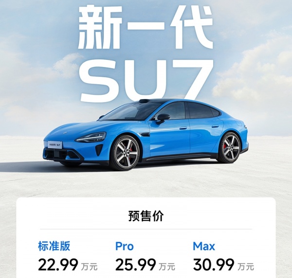 全新小米SU7预售价22.99-30.99万 将4月正式上市