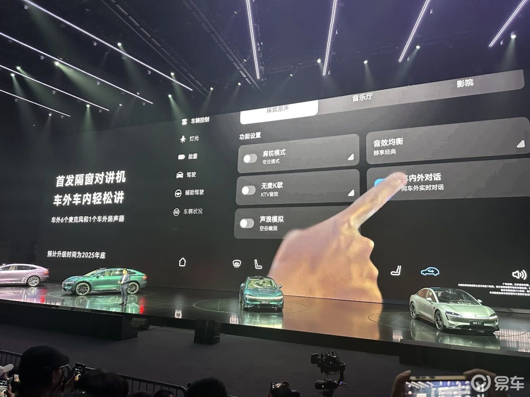 类似的功能其实早就出现了,只不过呈现方式都是车内对外喊话,以单向交流为主,智界R7的隔窗对讲则是实现了车内车外的双向沟通。