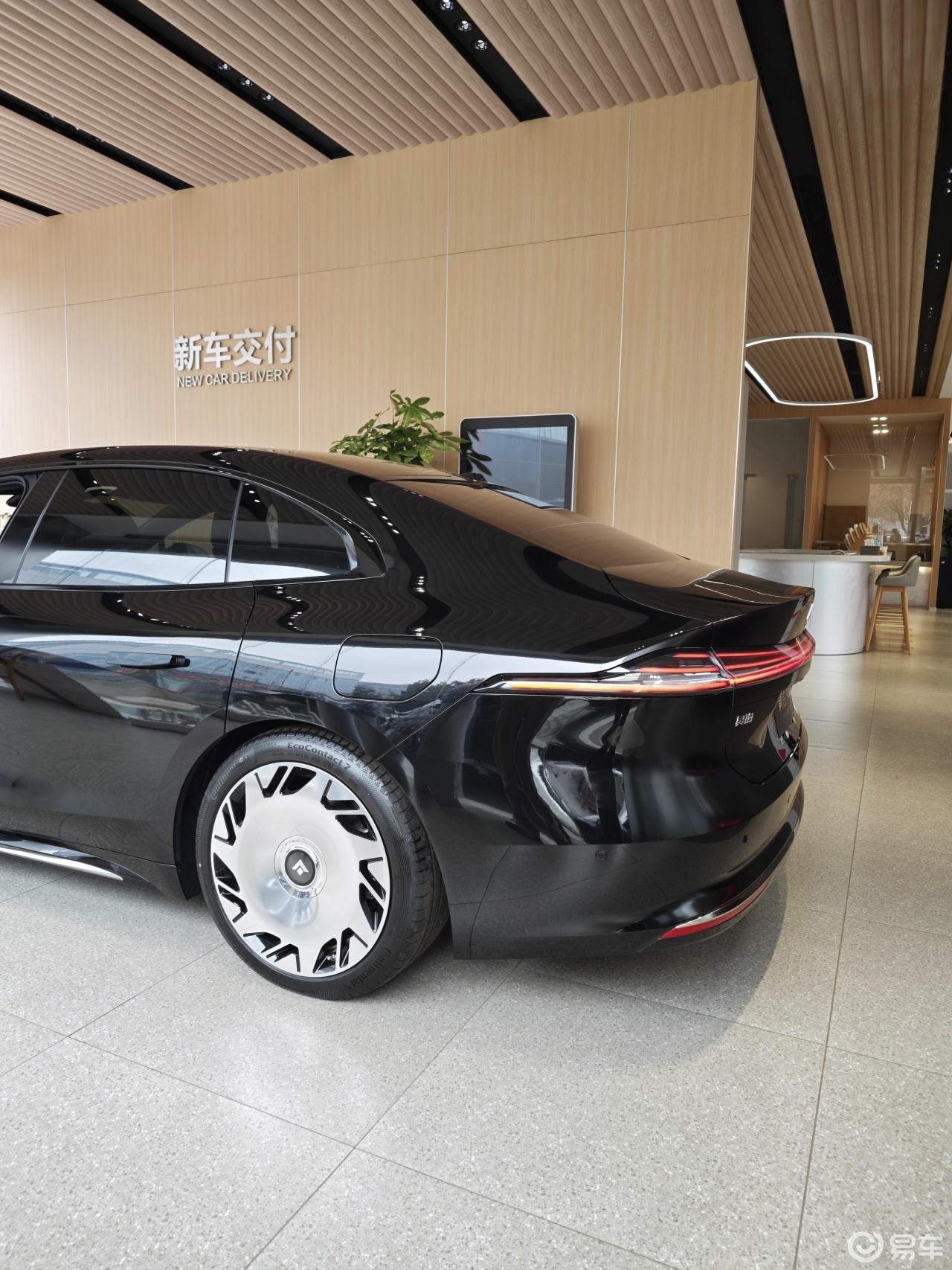 车长超过了5.1m,车尾很长,有一个正经的“屁股”,这非常难得。外观我唯一觉得有待商榷的就是下格栅的竖向条纹,感觉有一点点“张牙舞爪”,其他几乎可以说是完美,大灯尾灯结构中的细节、两款轮毂的造型,都表明了这是一台精致的、花心思开发的车。空悬降到最低以后,车身姿态也非常好看且高级,搭配这个大饼轮毂,十足的VIP风。