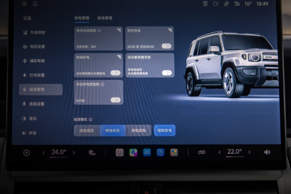 底盘方面,24.5°接近角/离去角,离地间隙220mm,600满满涉水深度,前麦弗逊+后H臂多连杆悬架,MRC“磁霸悬架”,由浦罗迪夫大师级调校,同级领先的iAWD鬣蜥智能电四驱,8+X全路况驾驶模式。磐石车身,11横11纵全方位安全设计,标配7气囊,航空级笼式电池包防护。