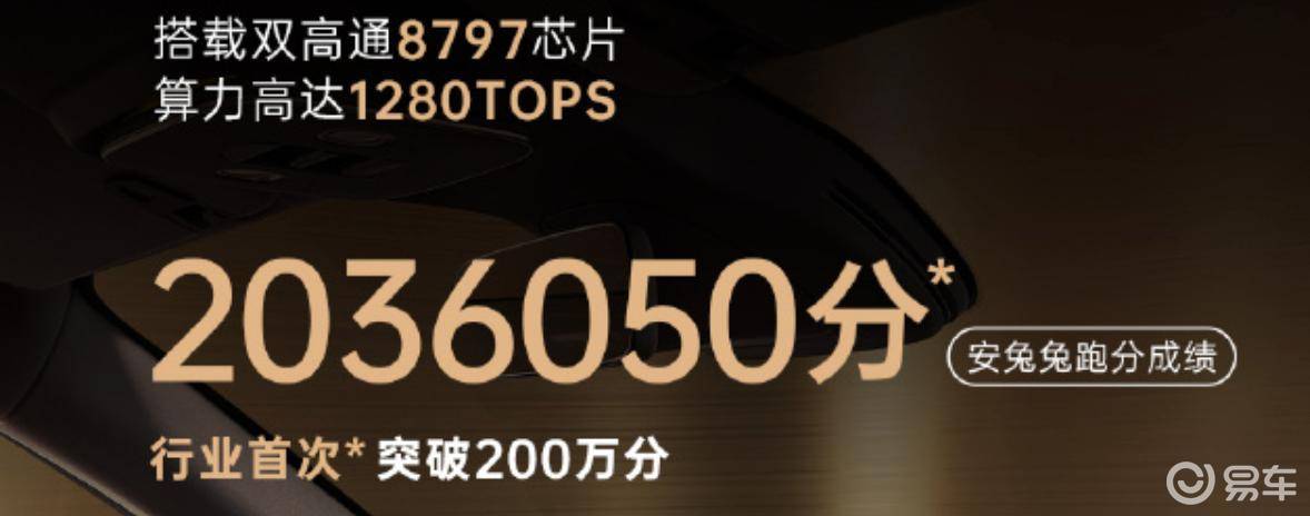赶超的智驾能力智驾方面搭载的是高通8797双芯(全球首发),综合算力高达1280TOPS。算力的绝对值虽然不是第一,但跑分第一。