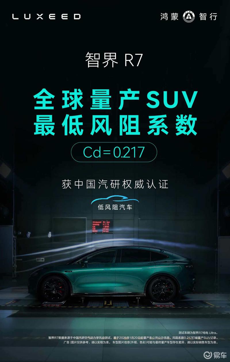 此外,智界R7还荣获全球领先专业市研机构J.D. Power中型纯电动SUV新车质量第一名,中汽研验证0.217全球量产SUV最低风阻。