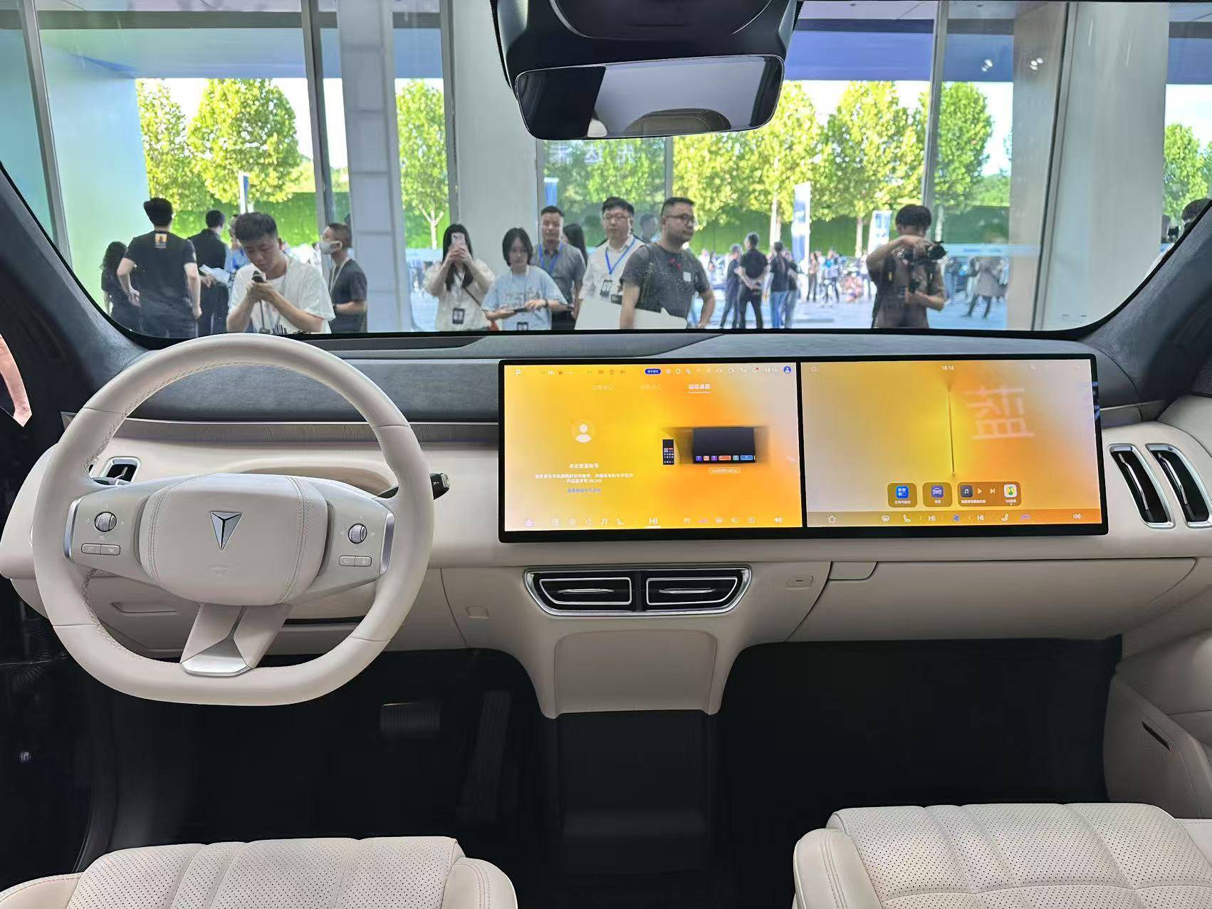 新车提供前后排移动中岛,中岛前后两端都配有杯架以及冷热两用智能冰箱及储物功能,冰箱制冷最低可达-6°C。二排搭载21.4英寸3K超清娱乐吸顶屏,搭载鸿蒙座舱首发的娱乐中心解决方案,同时,配备“儿童专属AI精灵”。